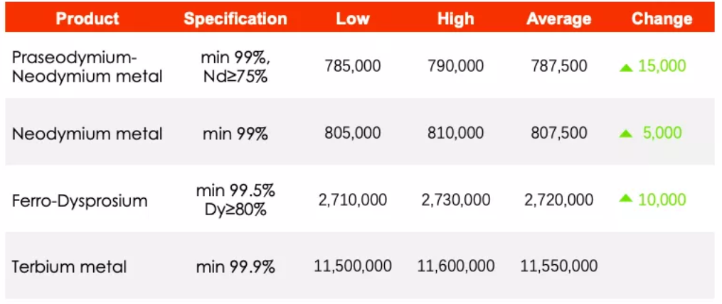 min 99% Nd≥75%ex-works China price CNY/mt As of Oct.21, 2021
