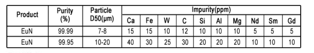 In summary, europium nitride powder, with its high purity and wide range of applications, is an important material for the development of cutting-edge technology and advanced materials. Its use in EuN phosphors and its unique optical properties make it a key component in the production of lighting and display technologies and the advancement of various scientific and industrial applications. As demand for energy-efficient and high-performance materials continues to grow, europium nitride is expected to play an increasingly important role in shaping the future of technology and innovation.